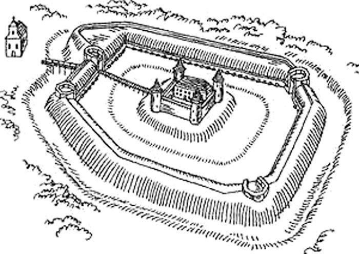 Не выпадковае, вядома, і размяшчэнне Геранёнскага мураванага касцёла, узведзенага ў 1529 г. Абнесены мураванай сцяной, ён непасрэдна прымыкаў да абарончага рова перад брамай і, такім чынам, з’яўляўся дадатковай перашкодай на шляху да замка.