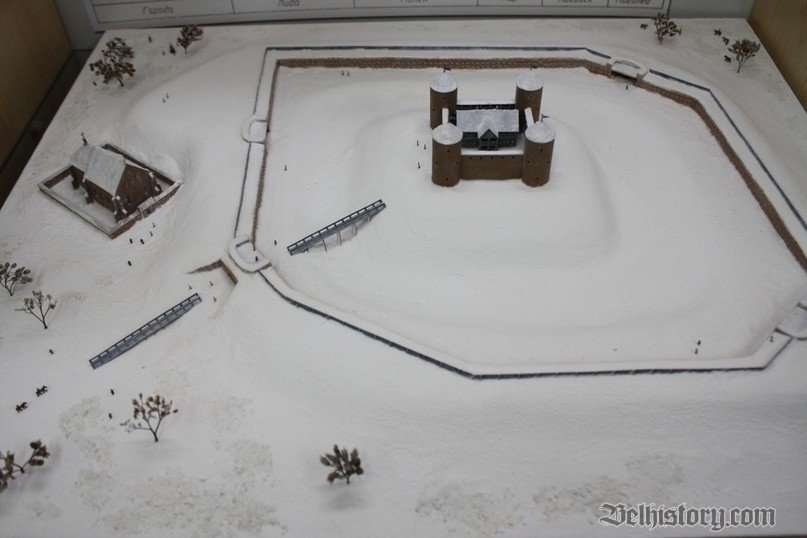 Важным элементам абароны замка быў магутны сямісотметровы земляны вал вышынёю 9-10 м. У аснаванні ён дасягаў 15 м шырыні. У плане вал нагадвае выцягнуты прамавугольнік з закругленымі вугламі. Ля падножжа вала ляжаў абарончы роў, які вясною, калі раставаў снег, або ўвосень, у пару дажджоў, запаўняўся вадою.