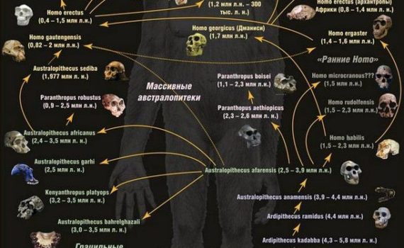 Дадзеная схема была падрыхтавана навуковым рэдактарам Antropogenez.ru Станіславам Драбышэўскім сумесна з часопісам “Тэхніка – Моладзі” (публікацыя ў часопісе ў красавіку 2012 г.). На партале публікуецца дапоўнены і выпраўлены варыянт “Эвалюцыйнага дрэва”, з улікам самых свежых дадзеных. Глядзець схему трэба знізу ўверх (пачынаючы ад старажытных міацэнавых малпаў). © паводле Antropogenez.ru